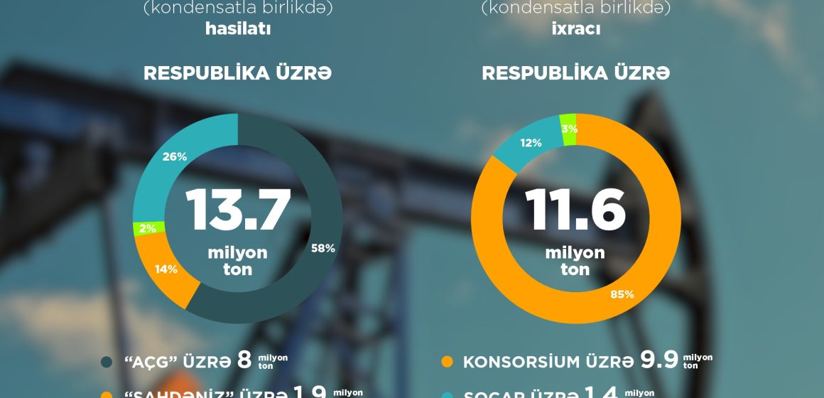 2025-ci ilin yanvar-iyun ayları üzrə operativ məlumatlara əsasən, 6 ay ərzində ölkədə 13,7 milyon ton neft (kondensatla birlikdə) hasil edilib. Hasilatın 8 milyon tonu “Azəri-Çıraq-Günəşli”nin, 1,9 milyon tonu (kondensat) “Şahdəniz”in, 0,3 milyon tonu (kondensat) “Abşeron” yatağının payına düşüb. SOCAR üzrə neft (kondensatla birlikdə) hasilatı 3,5 milyon ton təşkil edib.